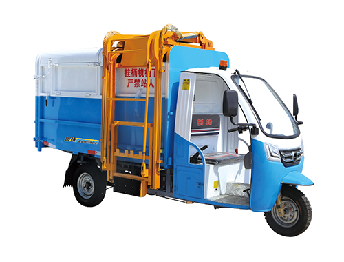 电动三轮自动装卸车,采用液压提升机构和液压自卸系统,是环卫、保洁、物业等部门运输垃圾的车型。