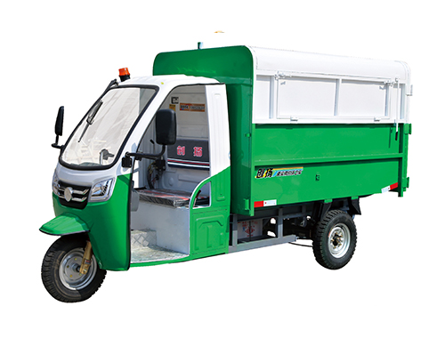 电动三轮自动装卸式清运车,采用液压自卸系统,是环卫、保洁、物业等部门运输垃圾的车型。